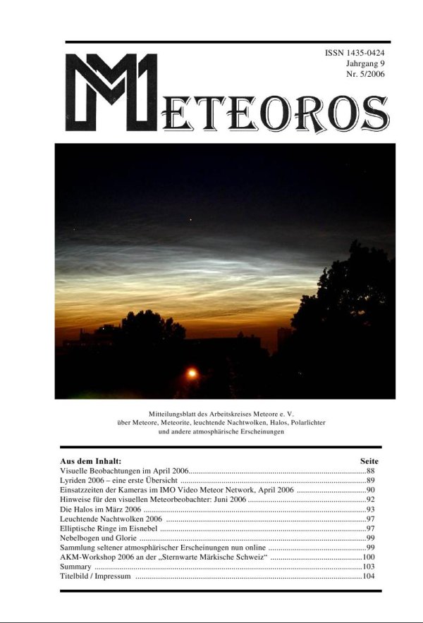 zeigt die Leuchtenden Nachtwolken am 24./25. Juni 2005 in Hamburg. Foto von Hartwig Lüthen. Eine stark komprimierte Version (500 kB) einer Animation dieser Nacht der NLCs kann unter http://www.gva-hamburg.de/nlc/nlc.avi abgerufen werden.